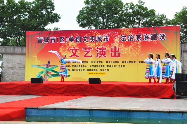 7月13日,由宣城市司法局、法宣办,宣州区司法局、法宣办、地税局、文旅委、鳌峰街道办事处、德阳社区主办,阳德社区普法志愿者“阳德之声”艺术团承办,宣城电视台、宣城日报、宣州区文化馆友情支持的宣城市(区)“争创文明城市建设法治家庭”文艺演出在府山广场隆重举行。